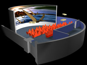 4D影院与普通影院最大的区别共有两点。其一就在于他的屏幕并非普通的平面幕而是多用样的弧幕或球幕再加上立体效果营造出人与环境很近的感觉。其二在于特效座椅和特效平台的配合能够实现6自由度运动的特效营造出人和环境互动的效果。这两方面效果的紧密配合共同作用才能够实现身临奇景的特殊效果